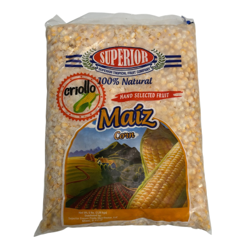 Granos frescos de maíz, refrigerados para mantener su calidad y sabor natural. No dulce, ideal para preparar sopas, guisos y recetas tradicionales que requieren un maíz auténtico y lleno de sabor. Perfecto para cocinar, moler o tostar.